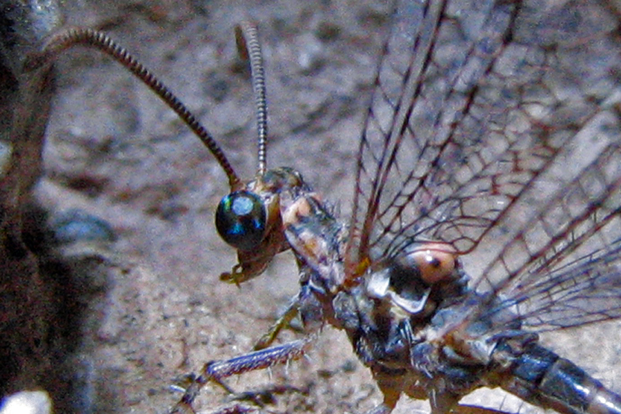 A Bejeweled Fly I don't know what kind of flying creature this is, but it sure has some interesting things going on. The part that strikes me the most is that big sapphire-like eye. It looks like it has been facet cut, like a precious stone. This was located at the Ranger's station in the main park area. I was shooting the bugs attracted to the outdoor light shining there. This one reminds me of a damsel fly, and was about 1.5" long. I still, sometimes, give little thought to a bug that I encounter, thinking it is not interesting enough to explore. How wrong this can be, as shown by this photo. It is almost impossible to see the intricate design of nature's smaller creatures without some type of magnification. There is a lot going on out there in this densely-populated world that we share. And which is actually superior? Any creature that can fly without external help has a one-up on us humans. I'd love to simply fly from one place to another, like so many bugs do everyday. Cameras are marvelous for capturing such close images : ) |