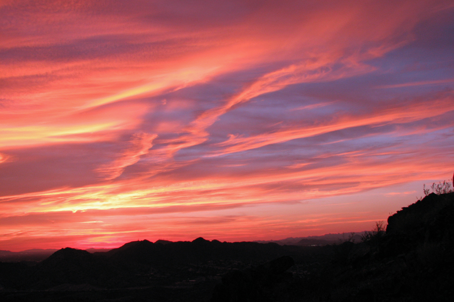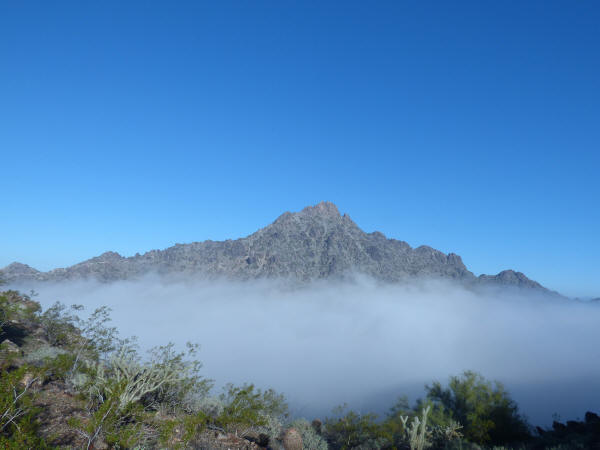 A Super Day of Fog in the Sonoran Desert Since before the day I was born way back when, here in Phoenix, I have never seen fog so thick and wide. It took me a while to realize what was going on this morning. I quickly decided that I needed to get up into it, and maybe even above it. I rode my bike to the main park entrance, and hiked to the small peak opposite. On the ride over, and for most of the hike up, I was in the middle of the fog. The air was so wet, droplets were forming on my helmet and hoodie. Visibility was low, at less than 100 ft. Now and then one of the peaks would peak through a break, then disappear again. Otherwise the sky was pure white. It kept rolling in and along. All of Phoenix was hidden beneath a sea of Fog. Every single building was cloaked. It was peaceful and powerful. It felt surreal as I watched the city fully engulfed in an enormous flood, a gentle, floating and flowing flood of suspended water. I find the timing of this super fog very interesting. Storms have been building up to this all week long. This parallels the way that the sports world has been descending on the city, building up all week too. With the big game being played today, the pinnacle has arrived, and Phoenix is unofficially the most intense place in the world. Was the weather simply matching that pinnacle and energy? What a super day so far : ) |