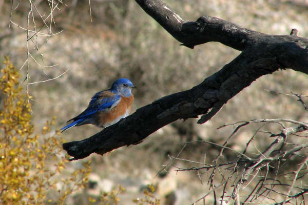 Western Bluebird hanging with a Mountain Bluebird. I experienced a Blue invasion today. About 15 Western Bluebirds rolled through The Park, and I was fortunate enough to be there. They were great models, seemingly posing for me. What a great addition this is to our list of wonderful critters found in The Park. The top bird is a male Western Bluebird, and the bottom bird is a male Mountain Bluebird. I hear that it is quite rare to see a Mountain Bluebird in the desert. It was very interesting how he was seen flying with Western Bluebirds, like somehow the Blues like to stick together. What a beautiful experience. So much color and such a presence. Thank you blue beauties, for stopping by and for being so friendly. Here is a link to a site with some nice Bluebird information: Arizona Birds