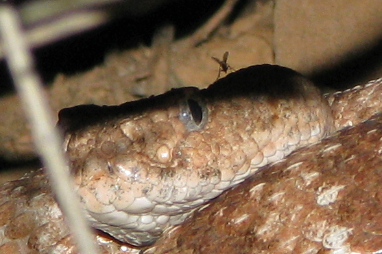 Speckled Rattlesnake with a little friend This beauty slithered by early this evening, as a friend and I were hiking. I was in front and didn't see this snake. Josh was behind and heard it moving along, scratchy across the rocks. The snake, I am guessing a he, went in under a rock and into hunting position. There he will sit and wait for something to come along, ready to strike should something happen within range. He may stay there for days at a time. This snake is a good example of the meditation masters in nature. I loved this encounter for a number of reasons: 1) It is always a special treat to encounter a rattler, especially the lesser common species. 2) The peacefulness of the exchange was extraordinary. The snake never rattled, not even a tiny bit. It means a lot to me when this happens, especially when we cross as closely as we did. At one point I was about 3 feet away as the snake passed me in the opposite direction. 3) The tiny fly on his head, as shown in the second image. I barely noticed this in the top image, the chosen one for publishing. As I looked at the other two images from the encounter, the bottom one stood out nicely. The snake's head is about the size of a half dollar, so this fly is tiny. 4) The honor of experiencing the locked-in connection to source that such an animal has. He knows what to do and where to go. He has a finely honed intuitive intelligence. He knows where to setup shop for the next while or so. He knows the core of the earth through his constant contact with the ground, and the kinetic vibrations that envelope his body as he moves along rough surfaces. He knows. I want to know the way he knows... |