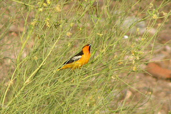 Bullock's Oriole, male This beauty came through The Park last May. We got short glimpses of him(?) a couple of times, but he was very elusive. Finally one day he landed in some Palo Verdes fairly close to me. He really made me work for this shot. I just kept shooting, hoping that my auto focus would lock on and I would get something good. Fortunately I did get some images that were good, though not great. This is the first season that I remember seeing one of these. I really get a kick out of capturing images of animals that I haven't seen in The Park before. |