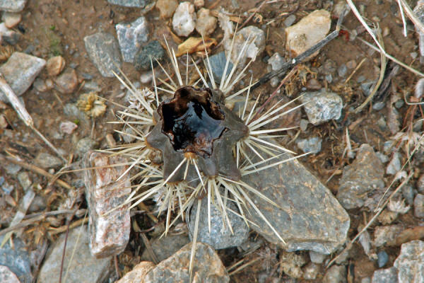 Chuckwalla hanging out under a rock This lizard was well hidden as I strode by. I only saw him because his front foot was sticking out from under the rock a little, and he moved it. These reptile spend a lot of time in crevices and under rocks like this. They seem to feel most comfortable in situations that would seem way too tight for most other animals. I love how they seem to take on the color of their surroundings. It almost seems like they can do that Chameleon thing. Not sure if they can change their coloration even a little. I have another idea of how they have such genius camouflage. I think that they stay in the same areas for generations. The first ones in slowly adapted their coloration to match their particular surroundings. |