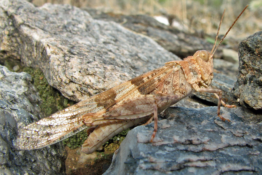 Not your average residential Cricket This cricket looks like a warrior, with all those spikes. Look at how huge those legs are! They are almost as high as he (?) is long, and that is just one section, What an impressive array of spikes he has going down the back of the legs, topped off with an subtle racing stripe. The appendage in the abdomen looks like a huge stinger, but upon closer inspection it looks flexible. Where it connects to the abdomen are 3 or 4 spikes, reminding me a bit of Triceratops. When I was shooting this critter, I had to get my camera down very close. Then I noticed how long one of the antenna is, so I had to be careful not to bump into it, and maybe set him off. And with those extra-long legs, he would likely jump a long way, out of my sight, at least at night. Thanks... click the image to see the amazing detail |