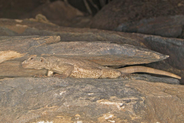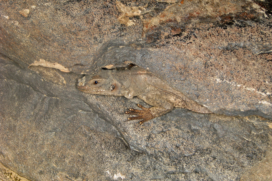 Same Chuckwalla hanging out under a rock When I first saw him, all I could see was that front foot. It is considerably darker than the rest of the leg, so it stood out some. If you click on the photo, the large version better shows the wonderful camouflage abilities of this critter. Chuckwallas can have a wide range of color variations, even in the same area. Some are brightly colored while others are very muted, like this one. I wonder how much this species has changed in the past 1 millions years. Maybe that is a short time in the history of this critter. I do love our reptilian brother and sisters... |
