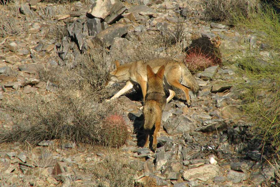Adult Coyotes What a fun encounter this morning when I came across a pair of beautiful Coyotes meandering along. I can't remember when I have had such a relaxed experience with this canine species. After I happened upon them, they slowly walked off, without the usual alarmed trot that we humans normally get when we cross paths. The bottom one had one of the richest coats that I have ever seen. He(?) even has a fox-ish look to him. It was great to see two healthy and seemingly contented Coyotes in The Park. It is a good sign that all is well with the eco system. Thanks for taking your time with me today.