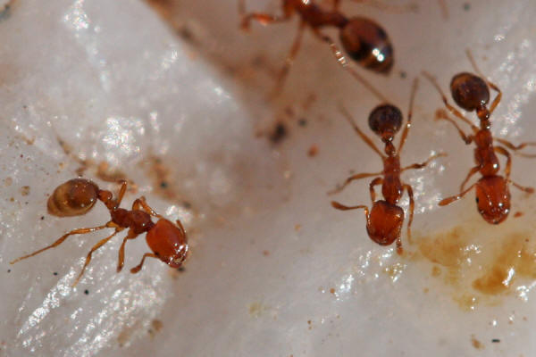 Tiny Ants doing their thing These are some of the smaller ants, about the size of a small grain of rice. They are some of the busier critters in The Park. One of their main jobs is cleaning up messes left by other animals. Here they are taking in the remains of an odd gelatinous mass that I encountered...I am not sure what it was or who was responsible...it was a new site for me. It was on a rock and was about the size of a hot dog cut in half. When I came back later, it was gone, and I then photographed the ants. It seemed like something that an animal ate, then it came back up, was left out, then was eaten again. My best guess is a coyote. The Park is full of mysteries : )